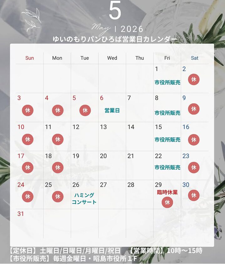 5月営業日のお知らせ